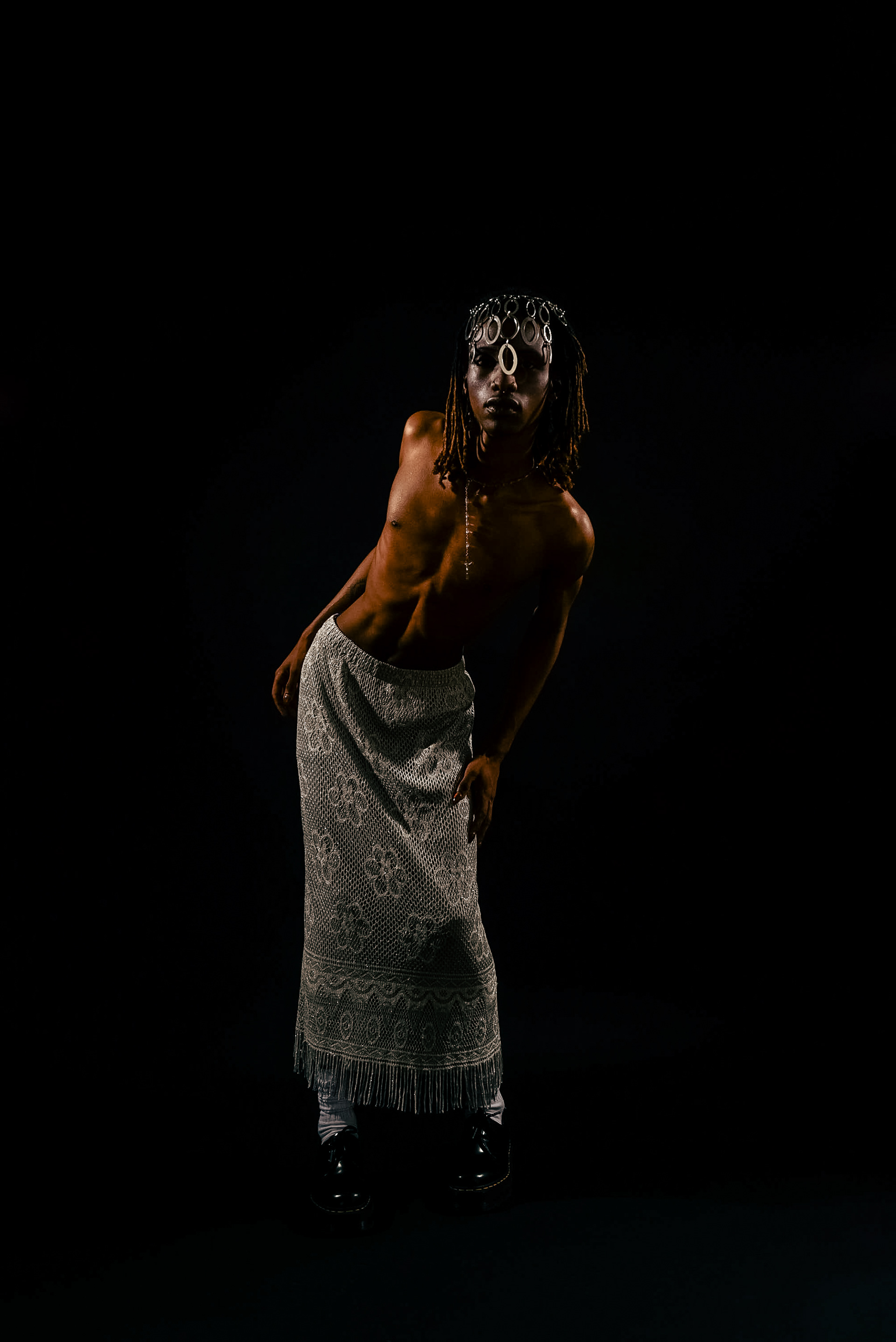This shoot's goal was reimagining what a deity is, under our own terms as non-binary people and generally anyone who doesn’t fall into the normal heteronormative binary. This project challenges inherited images of God — typically white, male, and patriarchal — by envisioning a deity that reflects Blackness, femininity, and fluidity.